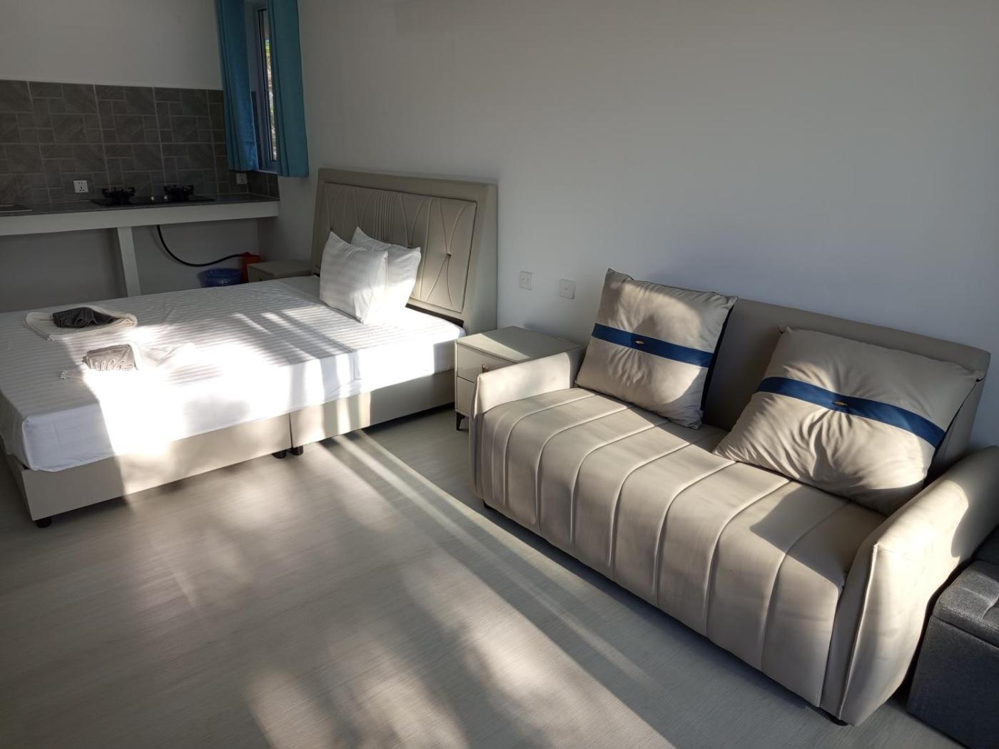 Deluxe Room. Guests can make meals in the fully equipped kitchenette that features a refrigerator, kitchenware and a tea and coffee maker. The spacious double room provides air conditioning, a private entrance, a terrace with sea views as well as a private bathroom featuring a shower. The unit offers 1 bed.